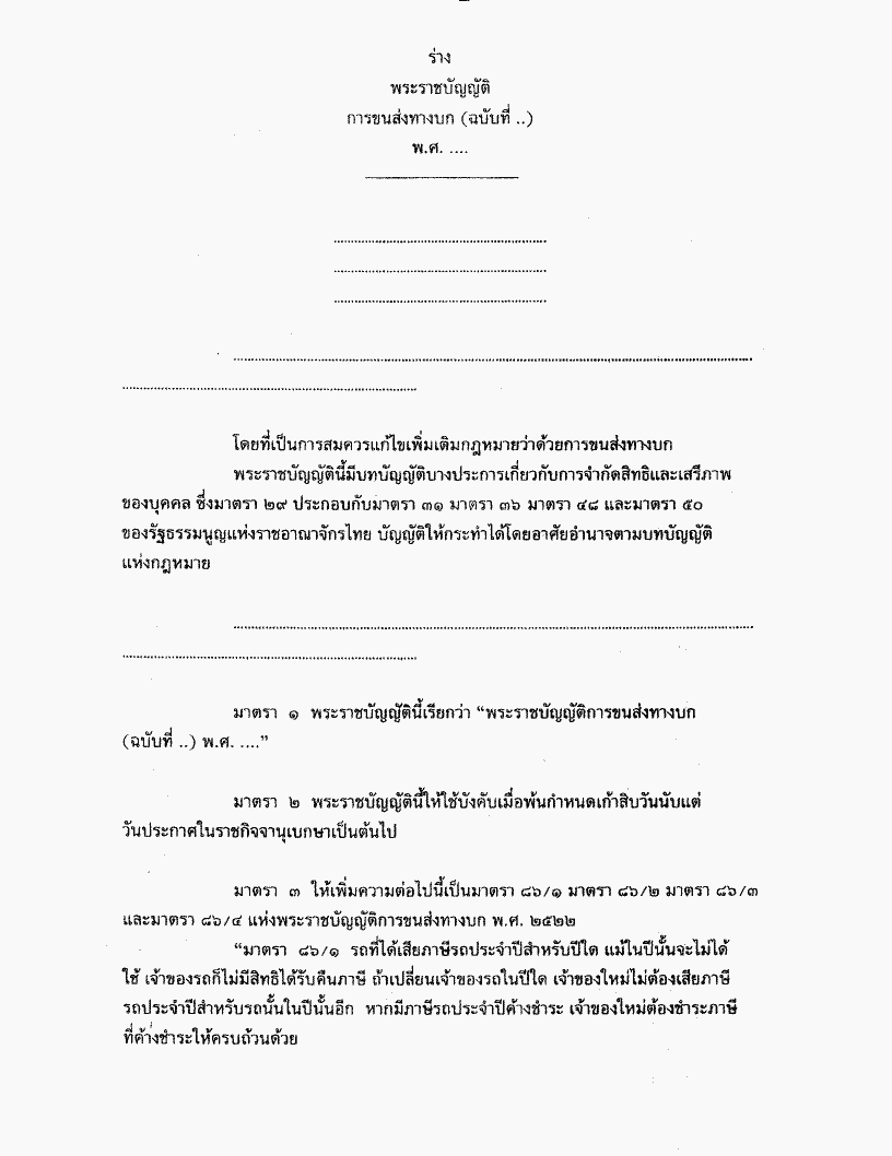 ร่างพระราชบัญญัติการขนส่งทางบก (ฉบับที่..) พ.ศ.... |