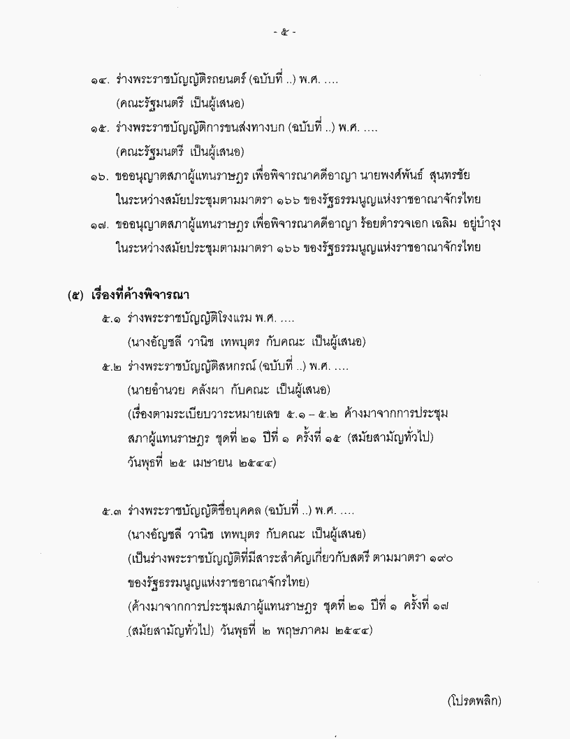ชื่อเอกสาร : ระเบียบวาระการประชุมสภาผู้แทนราษฎร ชุดที่ 21 ปีที่ 1 ครั้งที่ 9 (สมัยสามัญนิติบัญญัติ) วันพุธที่ 29 สิงหาคม 2544