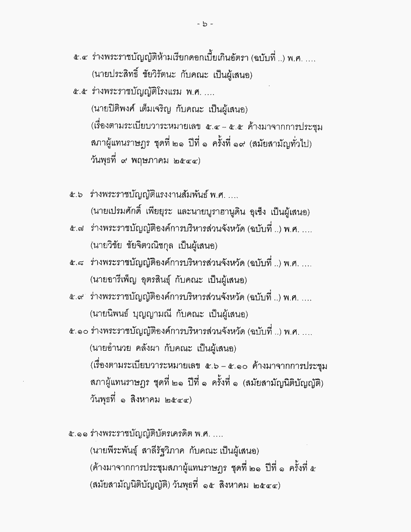 • ระเบียบวาระการประชุมสภาผู้แทนราษฎร ชุดที่ 21 ปีที่ 1 ครั้งที่ 9 (สมัยสามัญนิติบัญญัติ) วันพุธที่ 29 สิงหาคม 2544