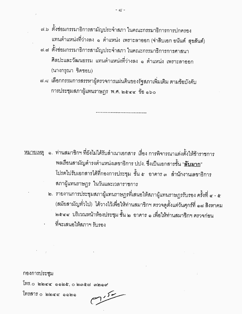 • ระเบียบวาระการประชุมสภาผู้แทนราษฎร ชุดที่ 21 ปีที่ 1 ครั้งที่ 9 (สมัยสามัญนิติบัญญัติ) วันพุธที่ 29 สิงหาคม 2544