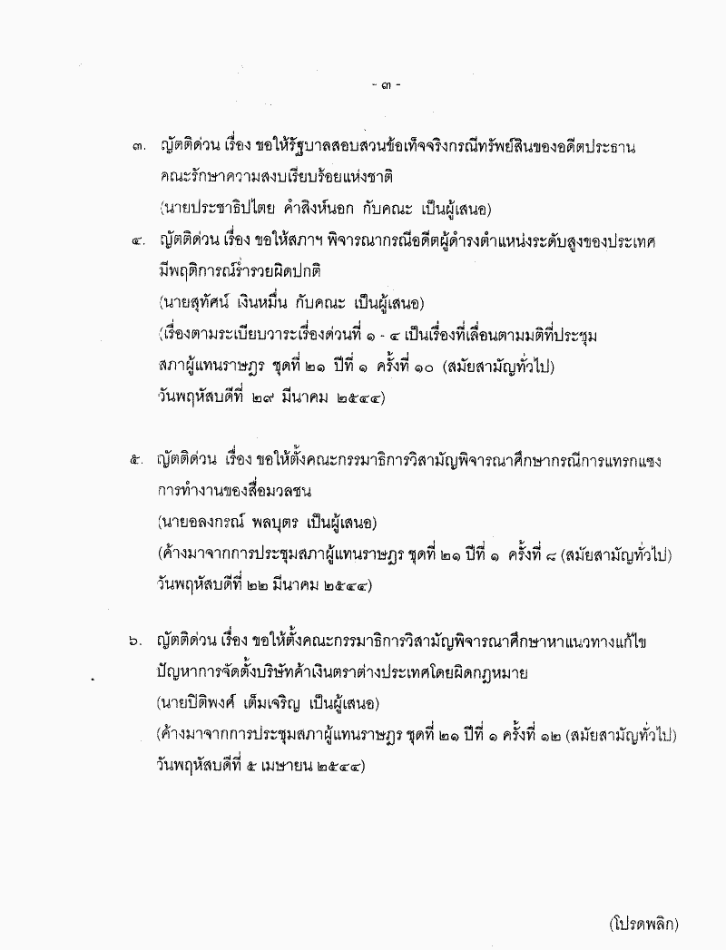 • ระเบียบวาระการประชุมสภาผู้แทนราษฎร ชุดที่ 21 ปีที่ 2 ครั้งที่ 2 (สมัยสามัญทั่วไป) วันพฤหัสบดีที่ 7 กุมภาพันธ์ 2545