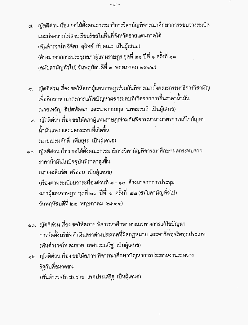 • ระเบียบวาระการประชุมสภาผู้แทนราษฎร ชุดที่ 21 ปีที่ 2 ครั้งที่ 2 (สมัยสามัญทั่วไป) วันพฤหัสบดีที่ 7 กุมภาพันธ์ 2545