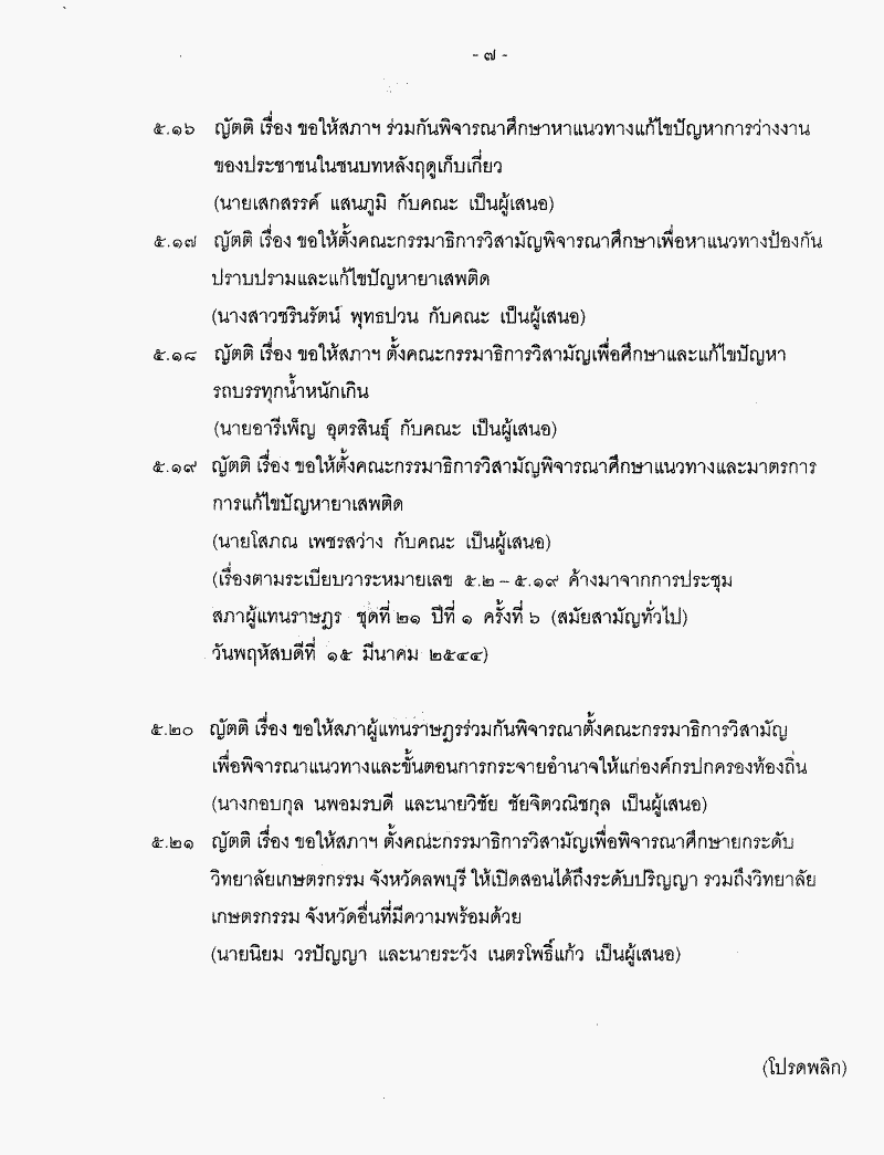• ระเบียบวาระการประชุมสภาผู้แทนราษฎร ชุดที่ 21 ปีที่ 2 ครั้งที่ 2 (สมัยสามัญทั่วไป) วันพฤหัสบดีที่ 7 กุมภาพันธ์ 2545