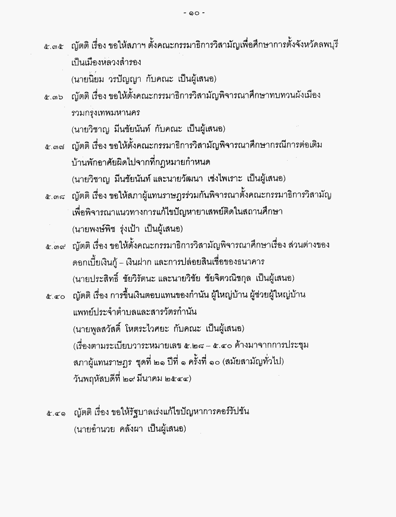 • ระเบียบวาระการประชุมสภาผู้แทนราษฎร ชุดที่ 21 ปีที่ 2 ครั้งที่ 2 (สมัยสามัญทั่วไป) วันพฤหัสบดีที่ 7 กุมภาพันธ์ 2545