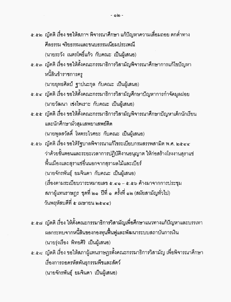 • ระเบียบวาระการประชุมสภาผู้แทนราษฎร ชุดที่ 21 ปีที่ 2 ครั้งที่ 2 (สมัยสามัญทั่วไป) วันพฤหัสบดีที่ 7 กุมภาพันธ์ 2545