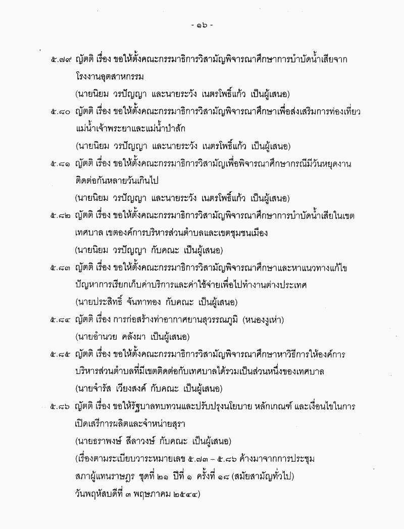 • ระเบียบวาระการประชุมสภาผู้แทนราษฎร ชุดที่ 21 ปีที่ 2 ครั้งที่ 2 (สมัยสามัญทั่วไป) วันพฤหัสบดีที่ 7 กุมภาพันธ์ 2545