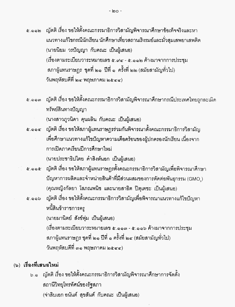 • ระเบียบวาระการประชุมสภาผู้แทนราษฎร ชุดที่ 21 ปีที่ 2 ครั้งที่ 2 (สมัยสามัญทั่วไป) วันพฤหัสบดีที่ 7 กุมภาพันธ์ 2545