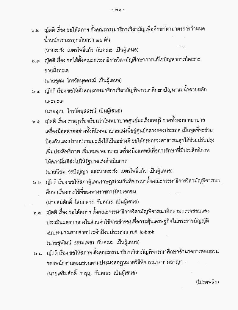 • ระเบียบวาระการประชุมสภาผู้แทนราษฎร ชุดที่ 21 ปีที่ 2 ครั้งที่ 2 (สมัยสามัญทั่วไป) วันพฤหัสบดีที่ 7 กุมภาพันธ์ 2545