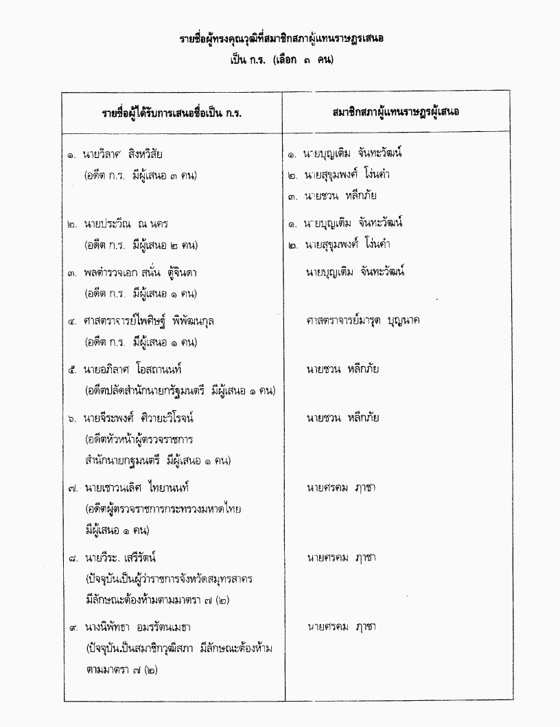 รายชื่อผู้ทรงคุณวุฒิที่สมาชิกสภาผู้แทนราษฎรเสนอเป็น ก.ร. (เลือก๓ คน) |