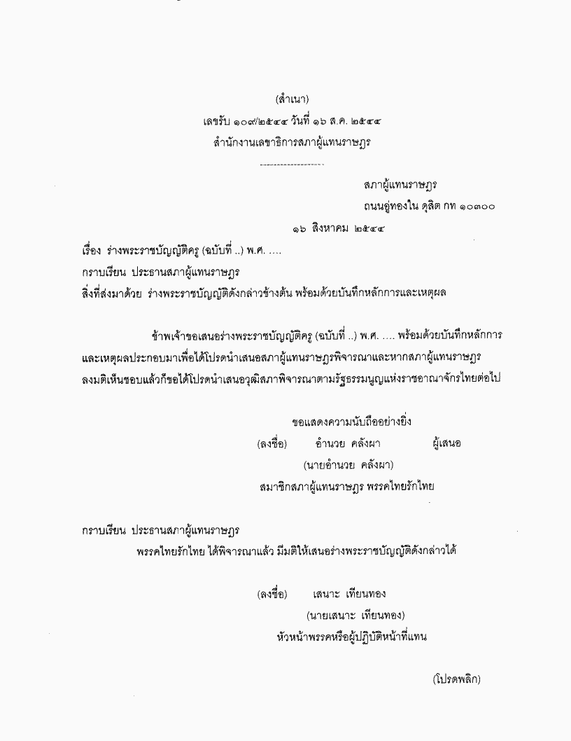 ชื่อเอกสาร :   ร่างพระราชบัญญัติครู (ฉบับที่..) พ.ศ..... (นายอำนวย คลังผา เป็นผู้เสนอ)