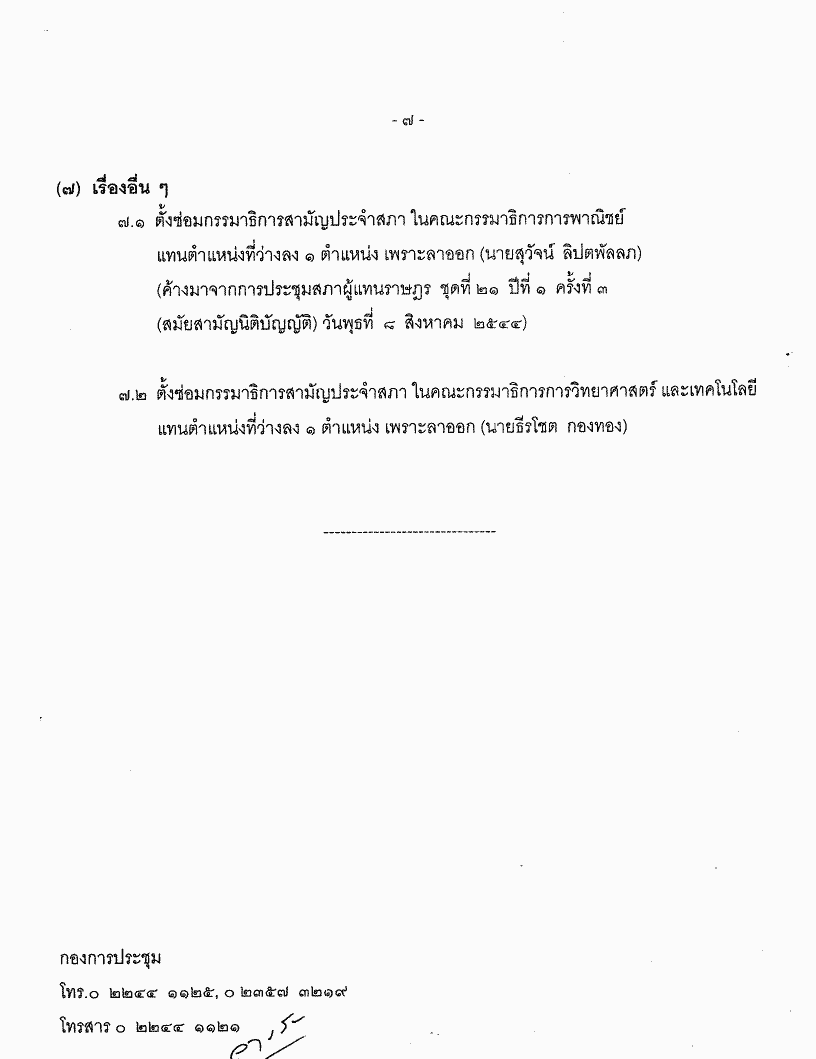 • ระเบียบวาระการประชุมสภาผู้แทนราษฎร ชุดที่ 21 ปีที่ 1 ครั้งที่ 14 (สมัยสามัญนิติบัญญัติ)วันพุธที่ 12 กันยายน 2544