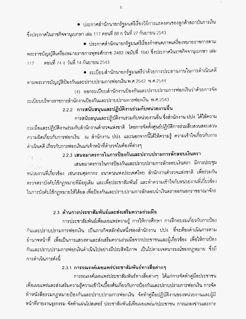 • ๒.๙ รับทราบรายงานผลการปฏิบัติงานป้องกันและปราบปรามการฟอกเงินประจำปี ๒๕๔๓