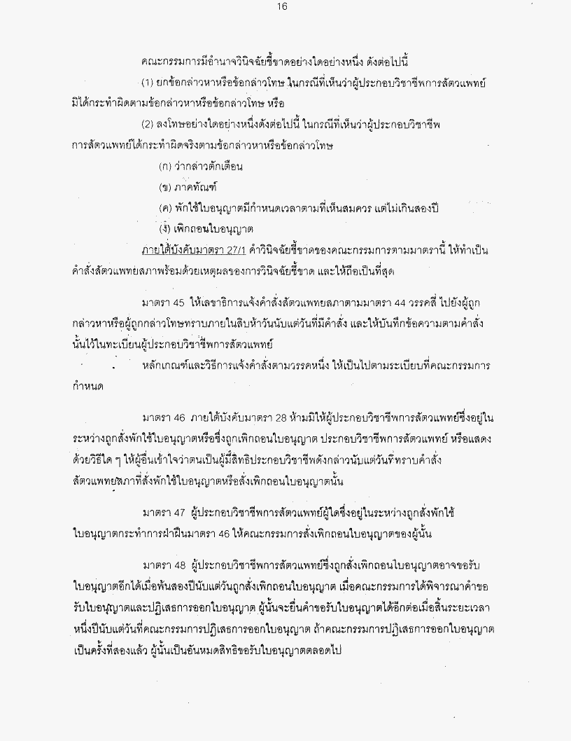 ชื่อเอกสาร :   ร่างพระราชบัญญัติวิชาชีพ การสัตวแพทย์ พ.ศ.... ซึ่งคณะกรรมาธิการวิสามัญพิจารณาเสร็จแล้ว