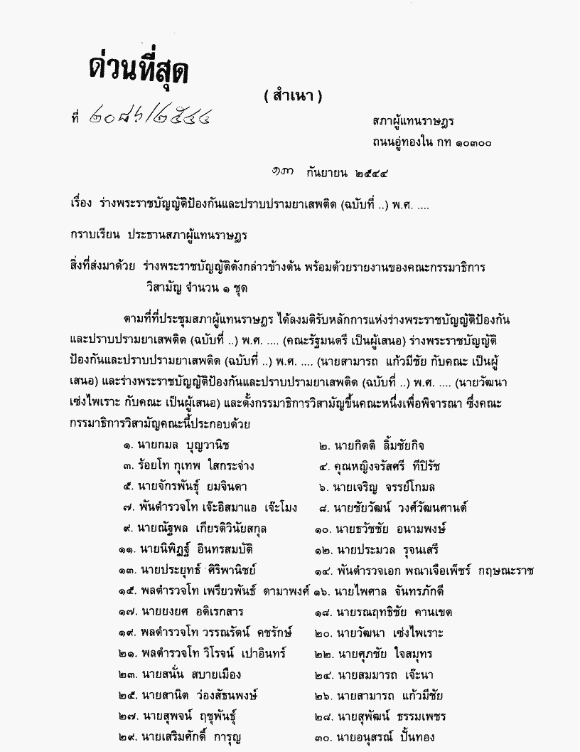 ร่างพระราชบัญญัติป้องกันและปราบปรามยาเสพติด (ฉบับที่..) พ.ศ..... |