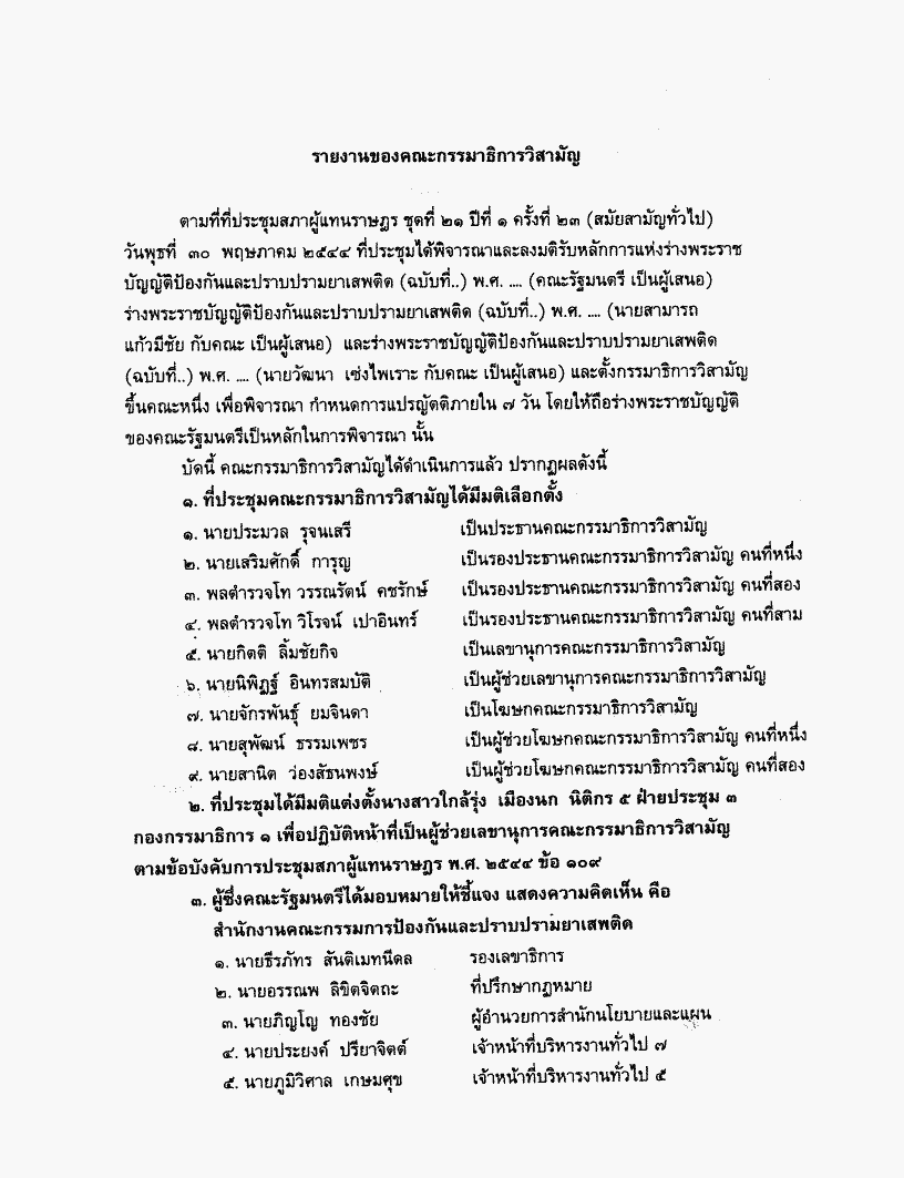 ชื่อเอกสาร :   ร่างพระราชบัญญัติป้องกันและปราบปรามยาเสพติด (ฉบับที่..) พ.ศ.....ซึ่งคณะกรรมาธิการวิสามัญพิจารณาเสร็จแล้ว