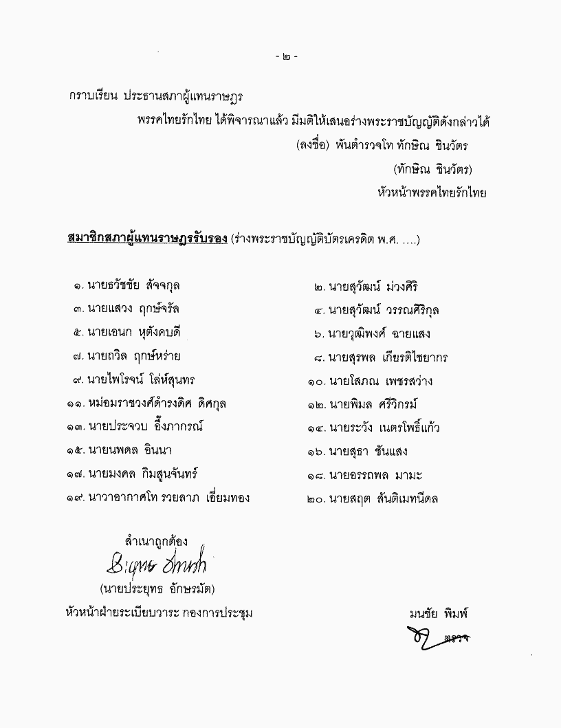 ชื่อเอกสาร :   ร่างพระราชบัญญัติบัตรเครดิต พ.ศ..... (นายปิติพงศ์ เต็มเจริญ กับคณะ เป็นผู้เสนอ)