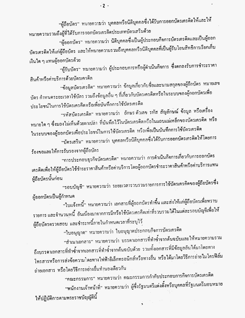 ชื่อเอกสาร :   ร่างพระราชบัญญัติบัตรเครดิต พ.ศ..... (นายปิติพงศ์ เต็มเจริญ กับคณะ เป็นผู้เสนอ)