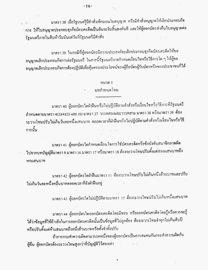 ชื่อเอกสาร :   ร่างพระราชบัญญัติบัตรเครดิต พ.ศ..... (นายปิติพงศ์ เต็มเจริญ กับคณะ เป็นผู้เสนอ)