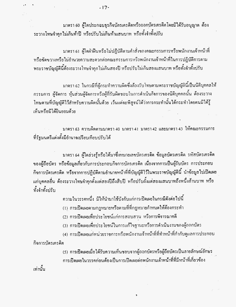 ชื่อเอกสาร :   ร่างพระราชบัญญัติบัตรเครดิต พ.ศ..... (นายปิติพงศ์ เต็มเจริญ กับคณะ เป็นผู้เสนอ)
