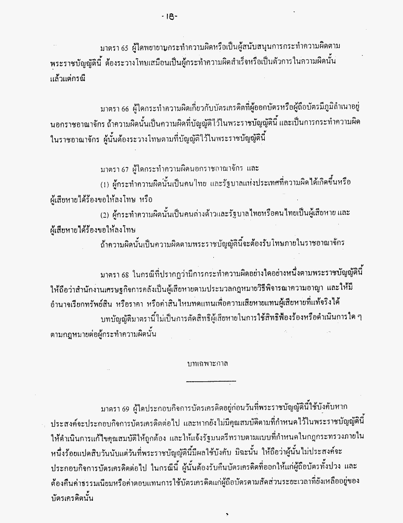 ชื่อเอกสาร :   ร่างพระราชบัญญัติบัตรเครดิต พ.ศ..... (นายปิติพงศ์ เต็มเจริญ กับคณะ เป็นผู้เสนอ)