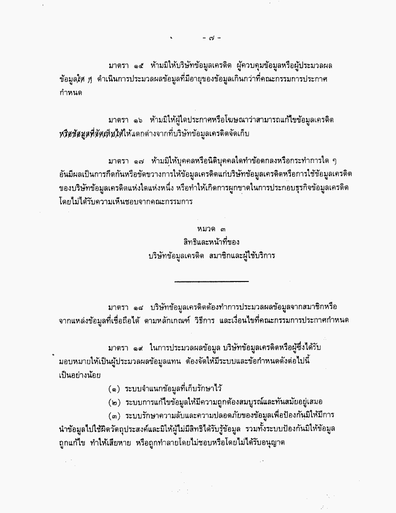 • ร่างพระราชบัญญัติการประกอบธุรกิจข้อมูลเครดิต พ.ศ....
