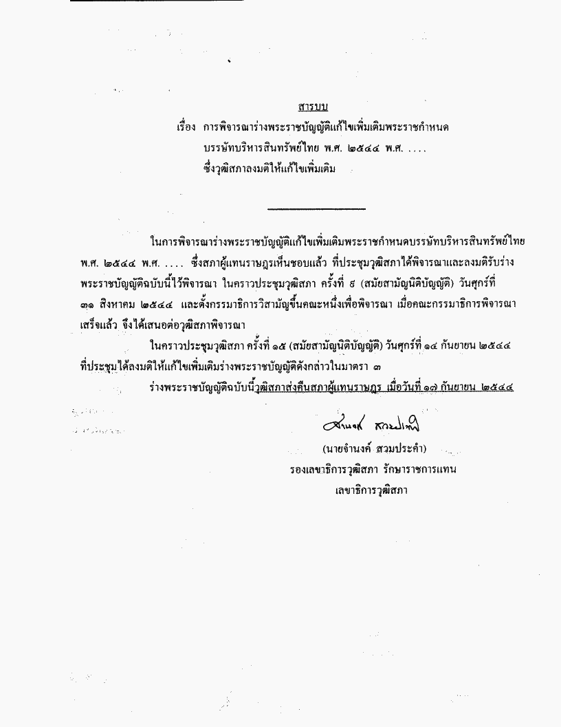 • ร่างพระราชบัญญัติแก้ไขเพิ่มเติมพระราชกำหนดบรรษัทบริหารสินทรัพย์ไทย พ. ศ . 2544 พ.ศ. ....