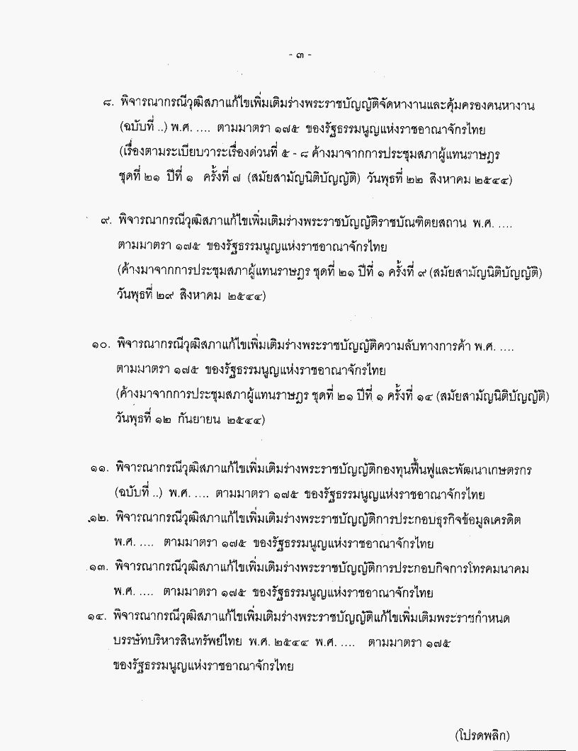 • ระเบียบวาระการประชุมสภาผู้แทนราษฎร ชุดที่ 21 ปีที่ 1 ครั้งที่ 16 (สมัยสามัญนิติบัญญัติ) วันพุธที่ 19 กันยายน 2544