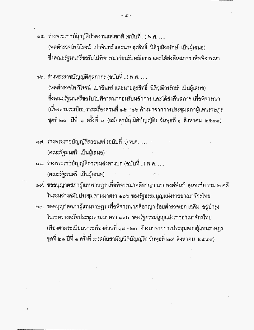 • ระเบียบวาระการประชุมสภาผู้แทนราษฎร ชุดที่ 21 ปีที่ 1 ครั้งที่ 18 (สมัยสามัญนิติบัญญัติ) วันพุธที่ 26 กันยายน 2544