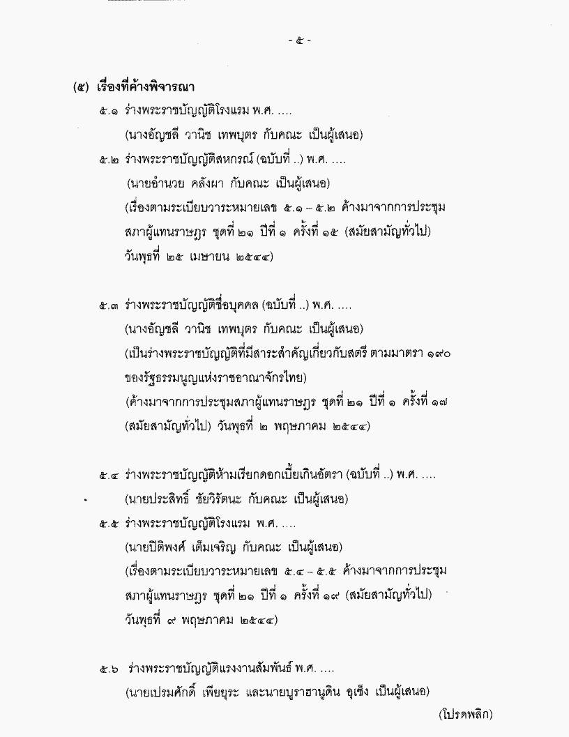 • ระเบียบวาระการประชุมสภาผู้แทนราษฎร ชุดที่ 21 ปีที่ 1 ครั้งที่ 18 (สมัยสามัญนิติบัญญัติ) วันพุธที่ 26 กันยายน 2544