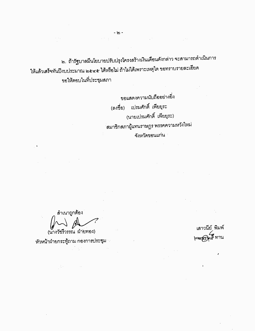 • กระทู้ถาม ที่ 049 เรื่อง การปรับโครงสร้างเงินเดือนของพนักงานอัยการ นายเปรมศักดิ์ เพียยุระ เป็นผู้ตั้งกระทู้ถาม ถามนายกรัฐมนตรี