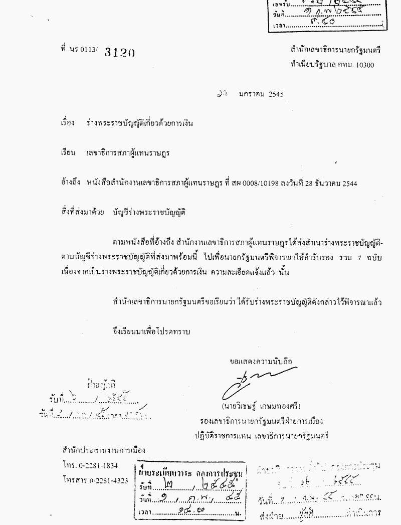 รับทราบเรื่องนายกรัฐมนตรีได้รับร่างพระราชบัญญัติเกี่ยวด้วยการเงินไว้พิจารณาให้คำรับรอง จำนวน 7 ฉบับ คือ |