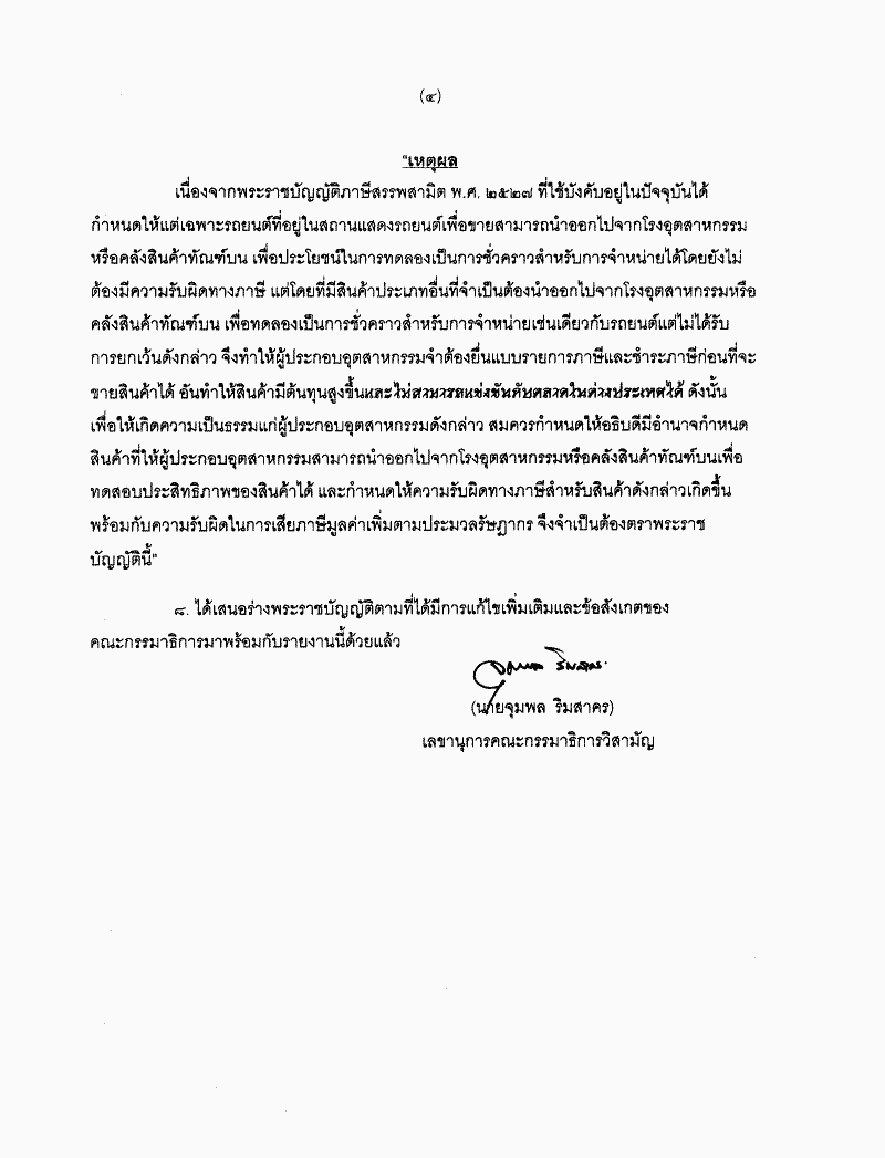 • ร่างพระราชบัญญัติภาษีสรรพสามิต (ฉบับที่..) พ.ศ..... ซึ่งคณะกรรมาธิการวิสามัญพิจารณาเสร็จแล้ว