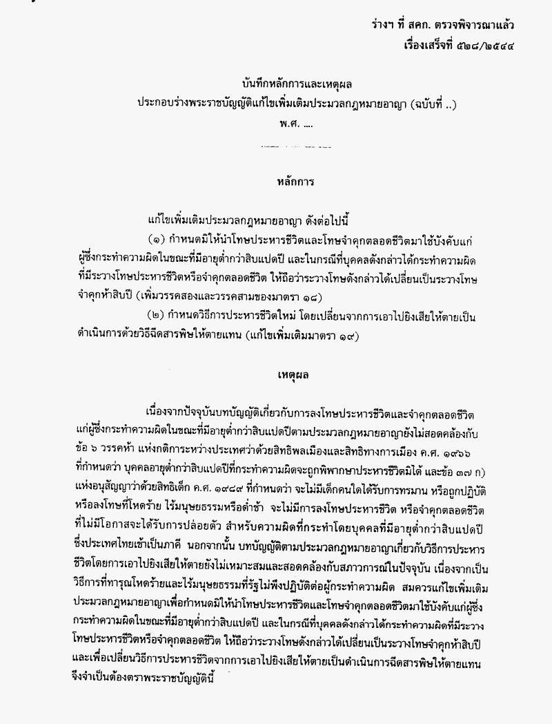 • ร่างพระราชบัญญัติแก้ไขเพิ่มเติมประมวลกฎหมายอาญา (ฉบับที่..) พ.ศ.....