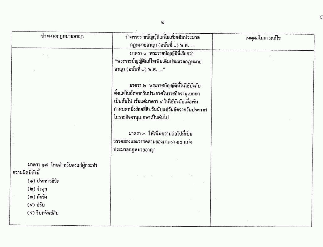 • ร่างพระราชบัญญัติแก้ไขเพิ่มเติมประมวลกฎหมายอาญา (ฉบับที่..) พ.ศ.....