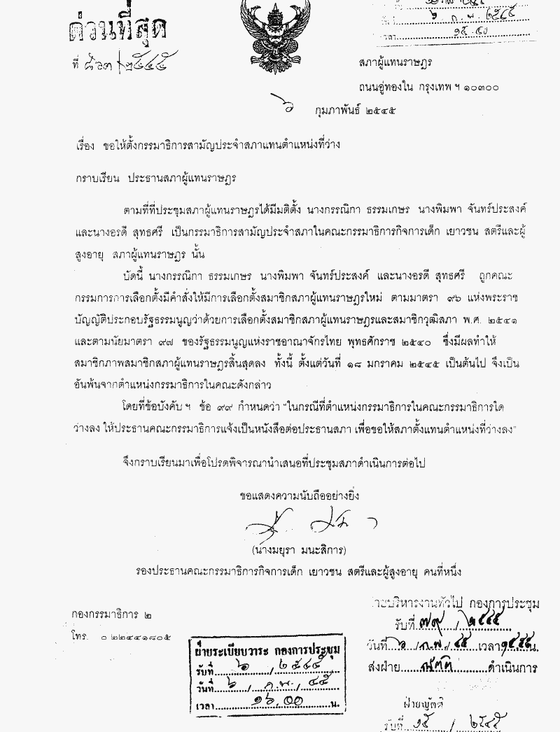 ขอให้ตั้งกรรมาธิการสามัญประจำสภาแทนตำแหน่งที่ว่าง |