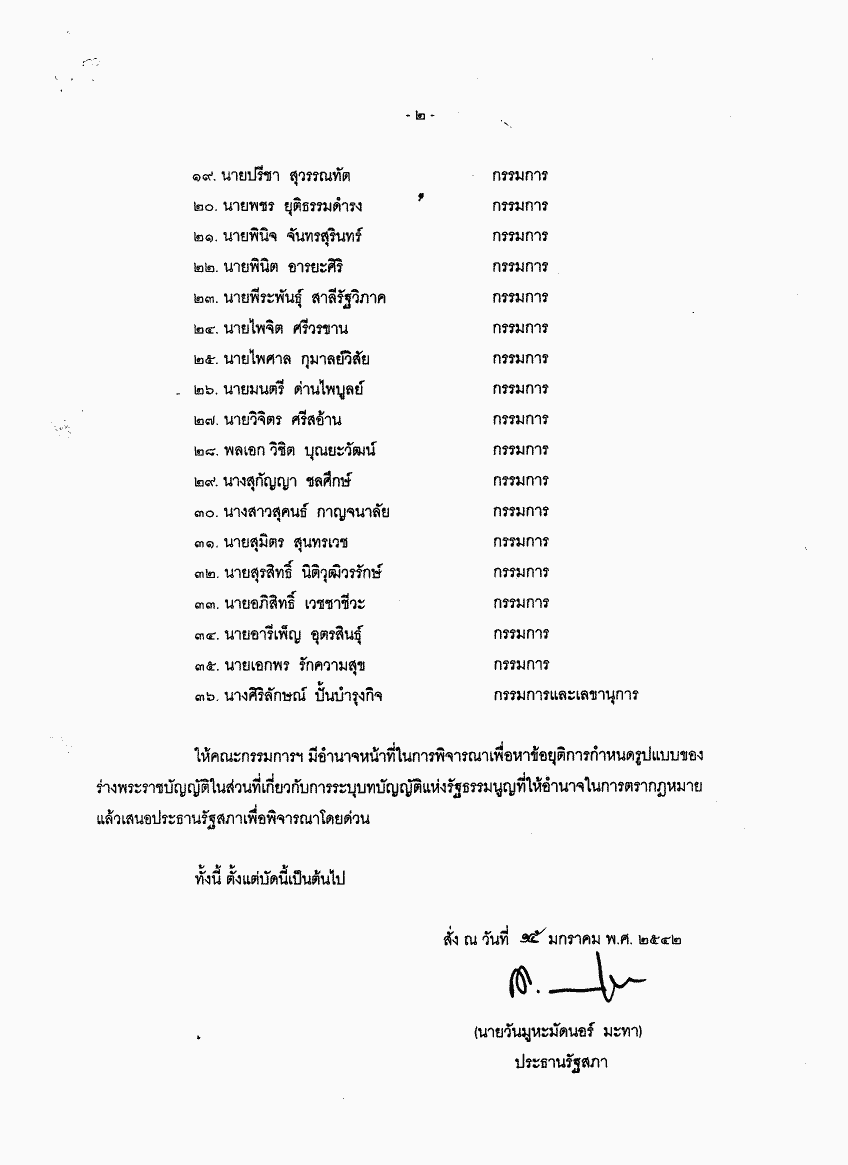 คำสั่งรัฐสภา ที่ ๓ /๒๕๔๒ เรื่อง แต่งตั้งคณะกรรมการเพื่อหาข้อยุติการกำหนดรูปแบบของร่างพระราชบัญญัติ |