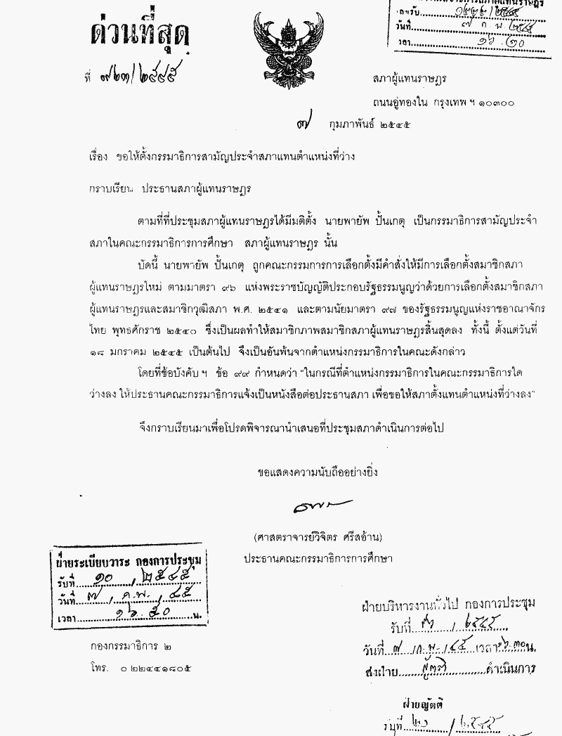 ขอให้ตั้งกรรมาธิการสามัญประจำสภาแทนตำแหน่งที่ว่าง |