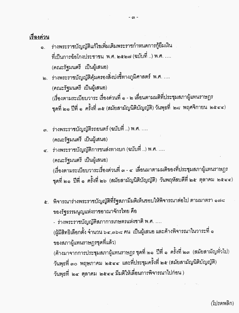• ระเบียบวาระการประชุมสภาผู้แทนราษฎร > ชุดที่ 21 > ปีที่ 2 > สมัยสามัญทั่วไป > ครั้งที่ 3