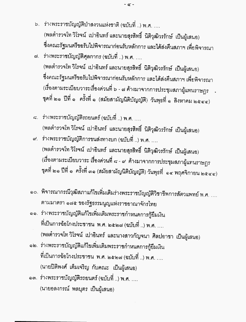 • ระเบียบวาระการประชุมสภาผู้แทนราษฎร ชุดที่ 21 ปีที่ 2 ครั้งที่ 3 (สมัยสามัญทั่วไป) วันพุธที่ 13 กุมภาพันธ์ 2545