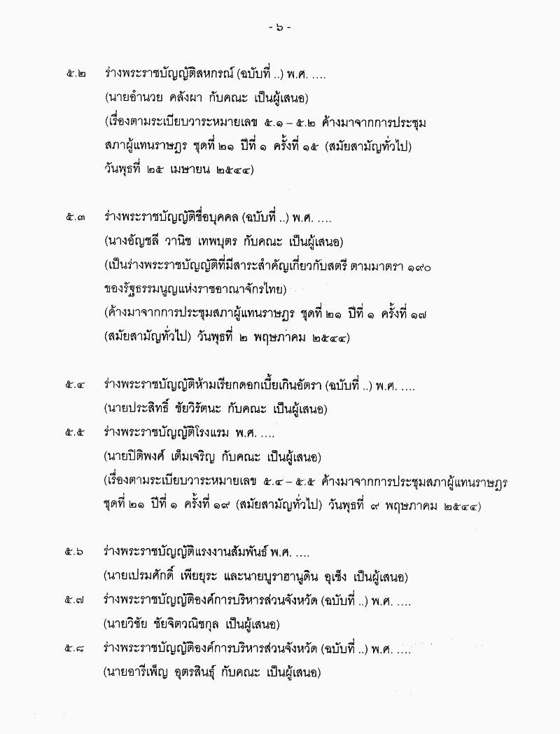 • ระเบียบวาระการประชุมสภาผู้แทนราษฎร ชุดที่ 21 ปีที่ 2 ครั้งที่ 3 (สมัยสามัญทั่วไป) วันพุธที่ 13 กุมภาพันธ์ 2545