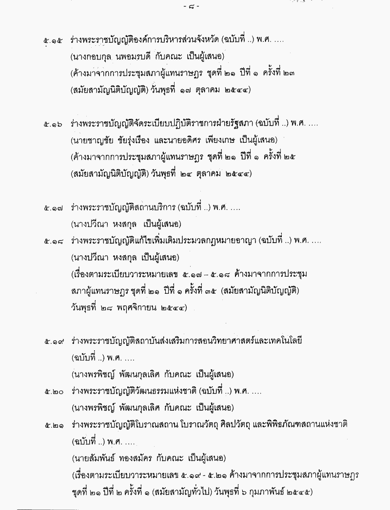 • ระเบียบวาระการประชุมสภาผู้แทนราษฎร ชุดที่ 21 ปีที่ 2 ครั้งที่ 3 (สมัยสามัญทั่วไป) วันพุธที่ 13 กุมภาพันธ์ 2545