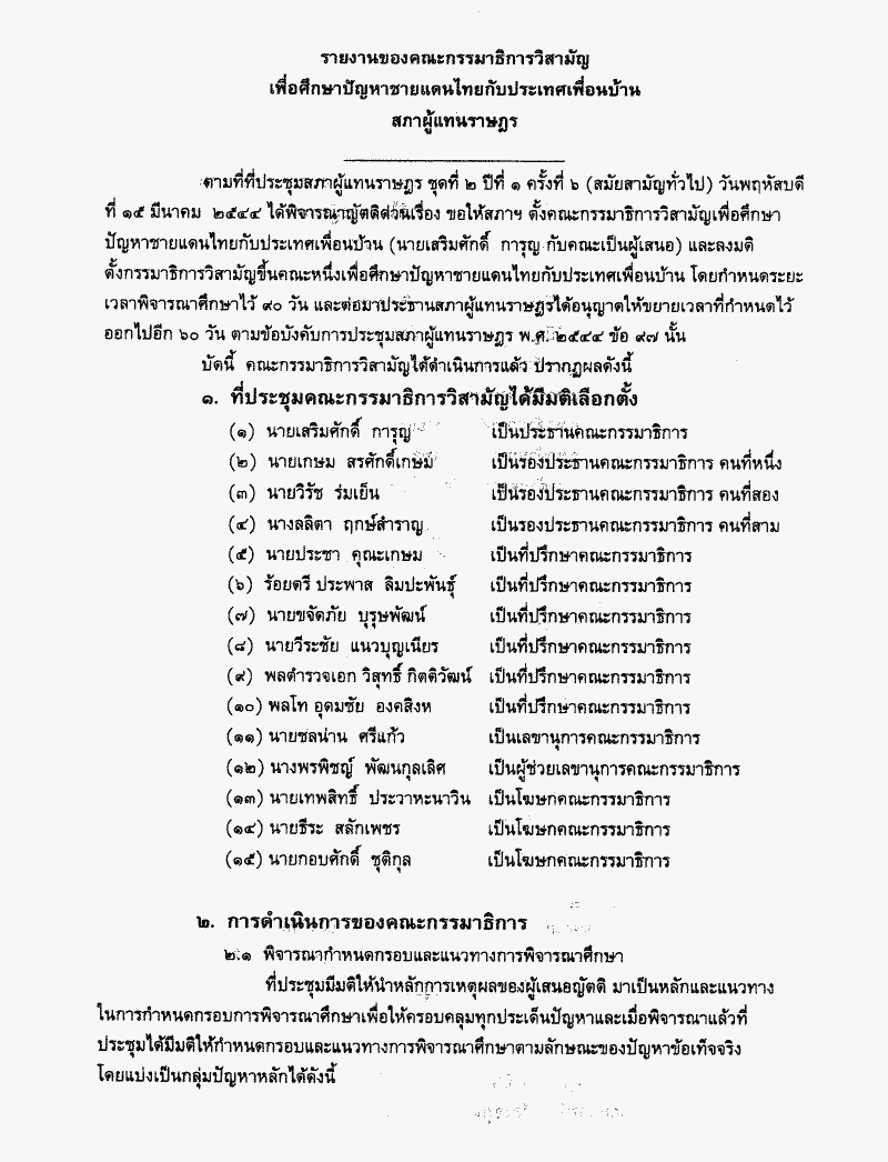 รายงานผลการพิจารณาศึกษาปัญหาชายแดนไทยกับประเทศเพื่อนบ้านซึ่งคณะกรรมาธิการวิสามัญพิจารณาเสร็จแล้ว