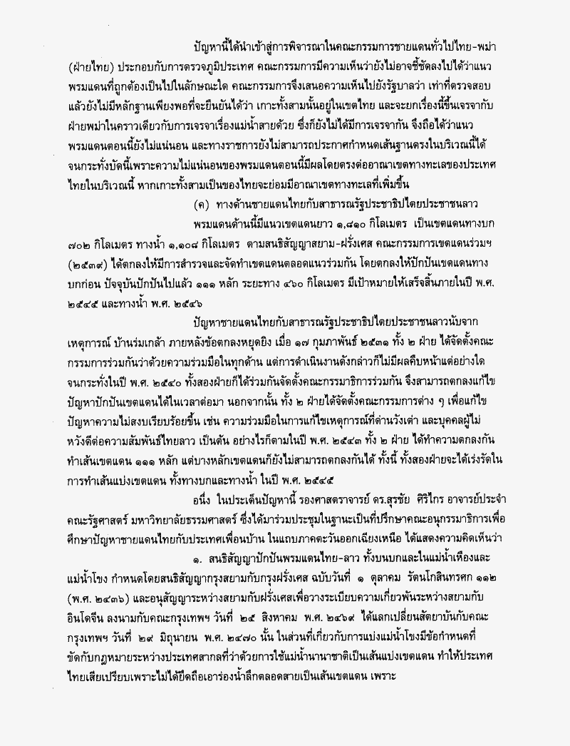 รายงานผลการพิจารณาศึกษาปัญหาชายแดนไทยกับประเทศเพื่อนบ้านซึ่งคณะกรรมาธิการวิสามัญพิจารณาเสร็จแล้ว