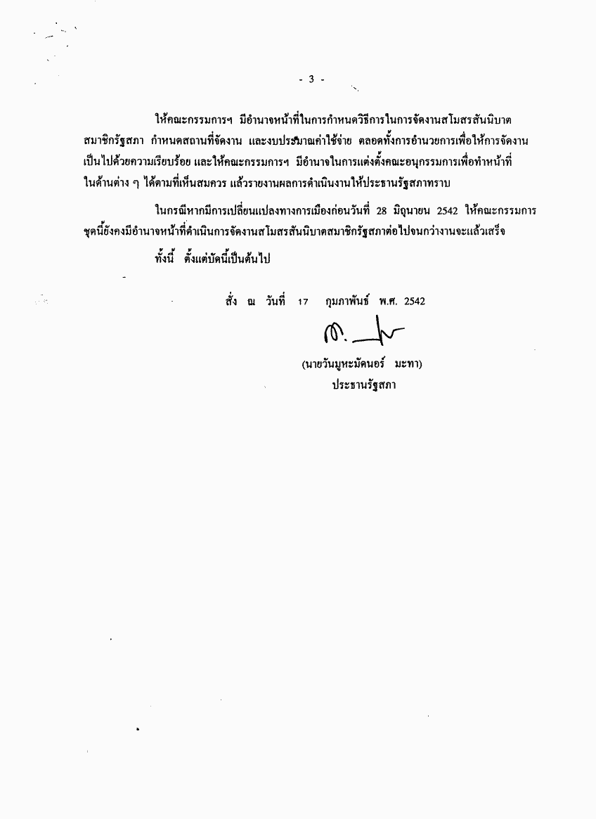 • คำสั่งรัฐสภา ที่ 8/2542 เรื่อง แต่งตั้งคณะกรรมการจัดงานสโมสรสันนิบาตสมาชิกรัฐสภา