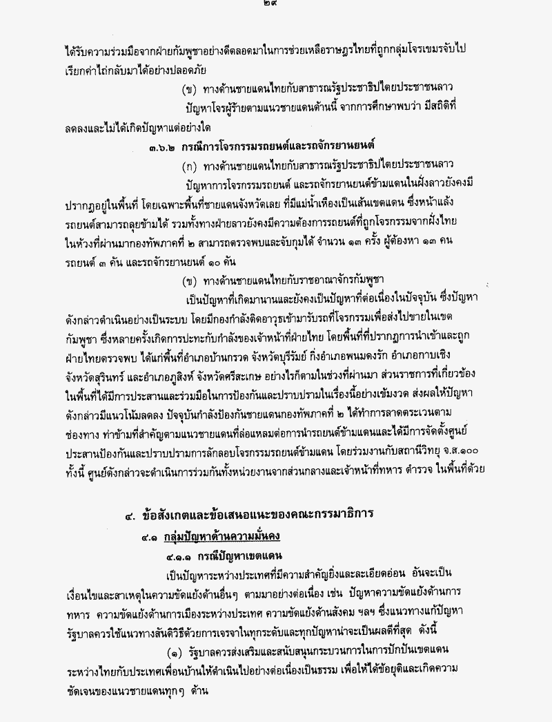 รายงานผลการพิจารณาศึกษาปัญหาชายแดนไทยกับประเทศเพื่อนบ้านซึ่งคณะกรรมาธิการวิสามัญพิจารณาเสร็จแล้ว