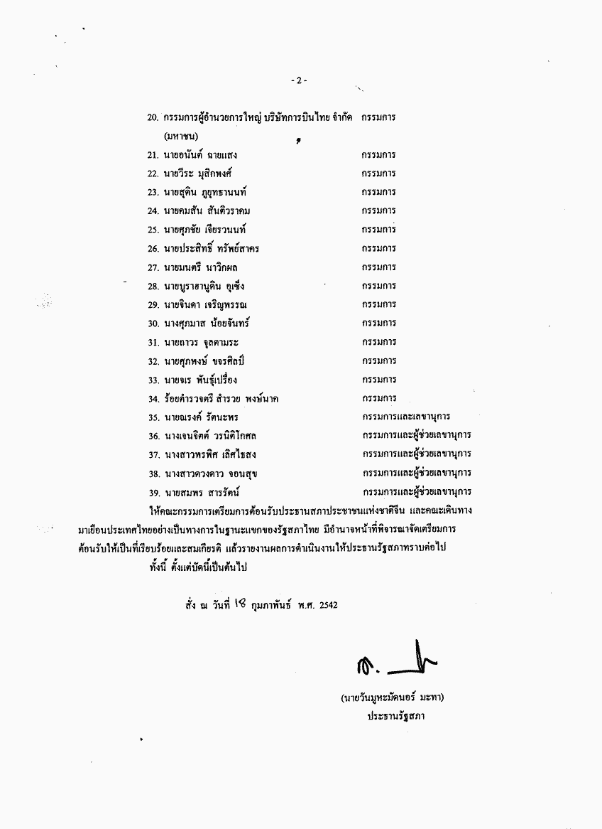 ชื่อเอกสาร : คำสั่งรัฐสภา ที่ 9/2542 เรื่อง แต่งตั้งคณะกรรมการเตรียมการต้อนรับประธานสภาประชาชนแห่งชาติจีน และคณะ