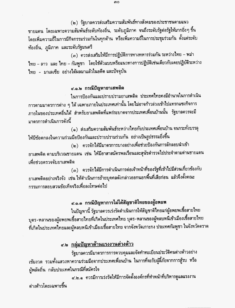 รายงานผลการพิจารณาศึกษาปัญหาชายแดนไทยกับประเทศเพื่อนบ้านซึ่งคณะกรรมาธิการวิสามัญพิจารณาเสร็จแล้ว