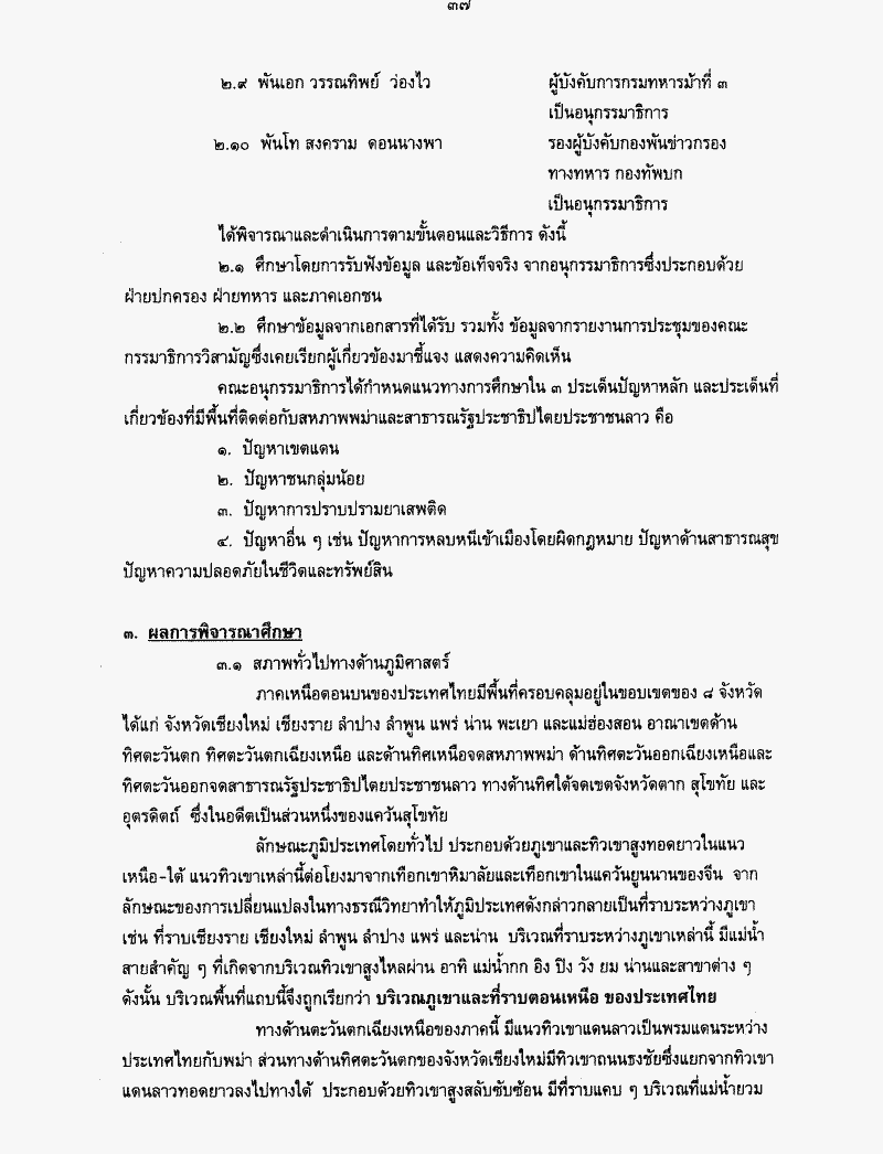 รายงานผลการพิจารณาศึกษาปัญหาชายแดนไทยกับประเทศเพื่อนบ้านซึ่งคณะกรรมาธิการวิสามัญพิจารณาเสร็จแล้ว