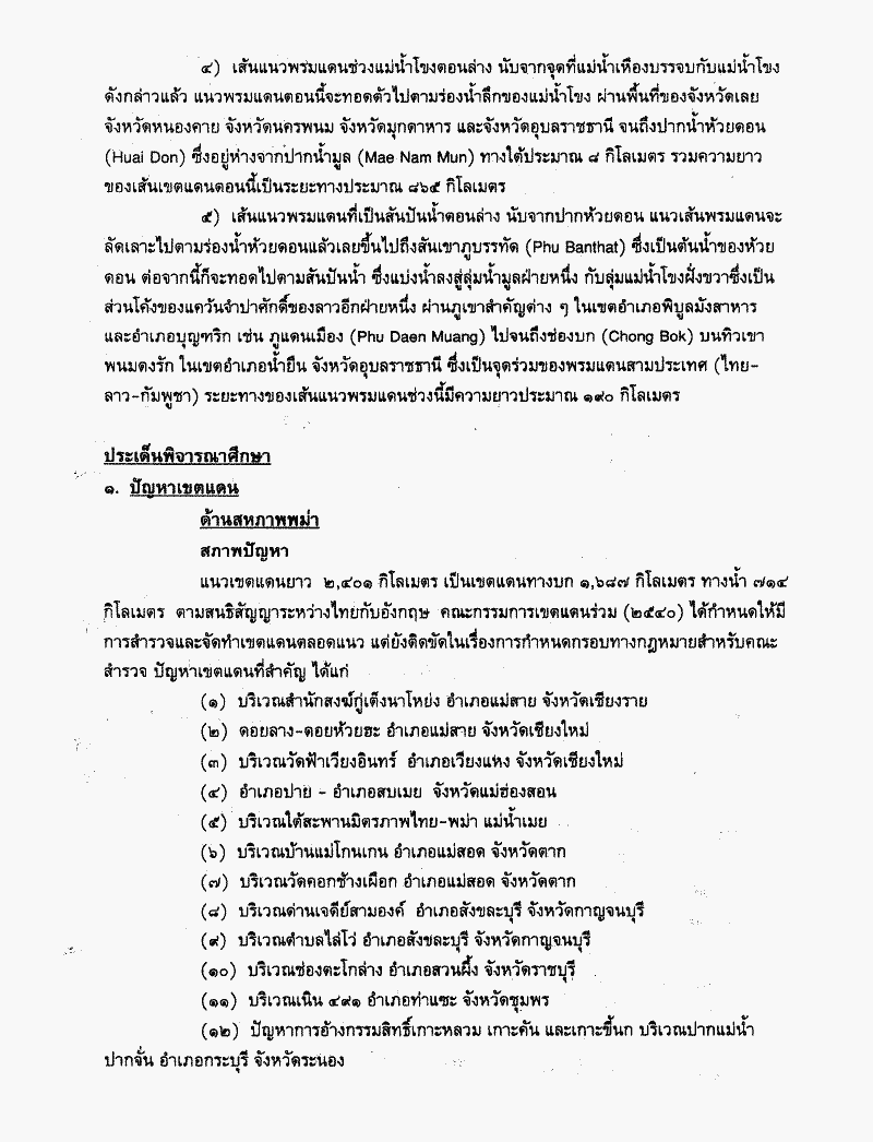 รายงานผลการพิจารณาศึกษาปัญหาชายแดนไทยกับประเทศเพื่อนบ้านซึ่งคณะกรรมาธิการวิสามัญพิจารณาเสร็จแล้ว