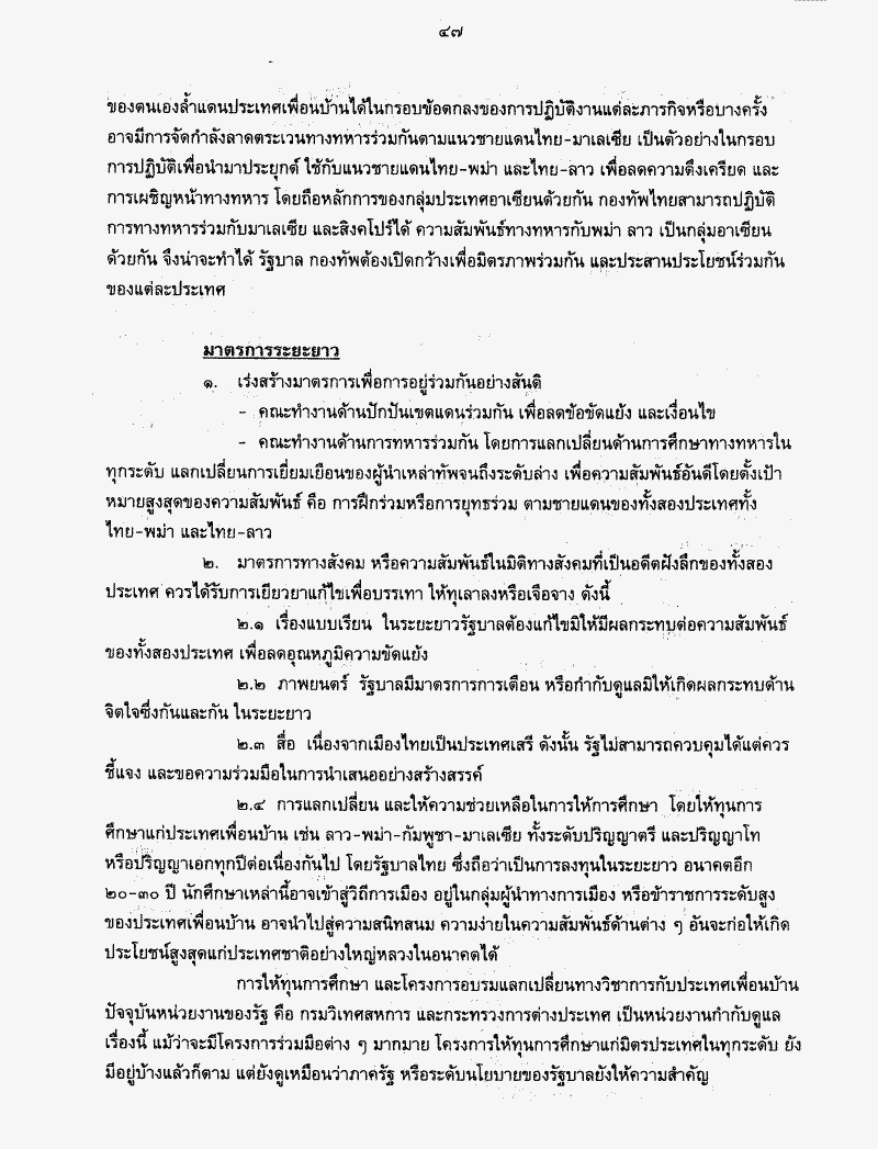รายงานผลการพิจารณาศึกษาปัญหาชายแดนไทยกับประเทศเพื่อนบ้านซึ่งคณะกรรมาธิการวิสามัญพิจารณาเสร็จแล้ว